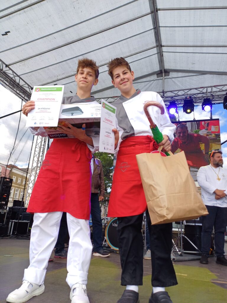 Naši školu reprezentovali Nicolas Partl (2. ročník, obor kuchař – číšník) a František Jiruška (1. ročník, obor hotelnictví a event management). Chlapci soutěžili s následujícím menu: Vepřová panenka v bránici, celerové pyré s vanilkou, nádivka s medvědím česnekem, glazovaná zelenina a smržová omáčka.