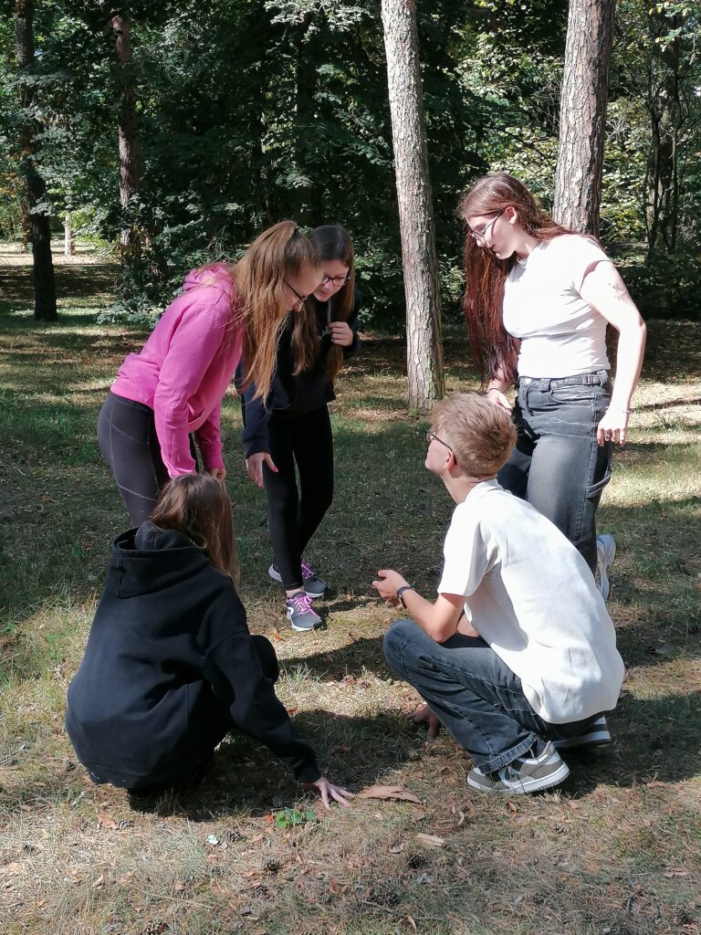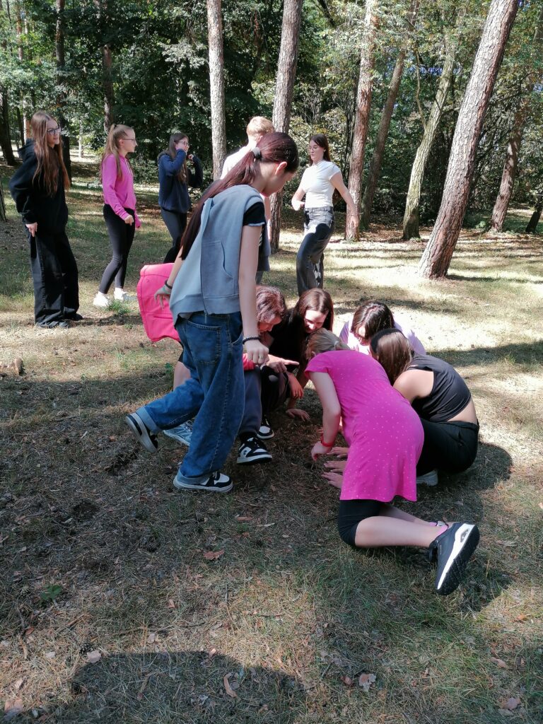 Po úvodní části se žáci přesunuli do parku, kde probíhaly seznamovací hry a aktivity zaměřené na týmovou spolupráci. Cílem těchto aktivit bylo pomoci žákům lépe se seznámit a posílit vzájemnou spolupráci v nové třídě.