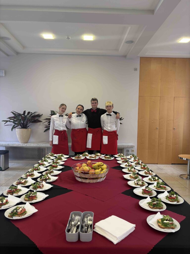 Na Magistrátu města Pardubice se ve dnech 15. – 16. září 2025 uskutečnila konference, na které nesměla chybět naše péče o hosty. Celou organizaci a průběh akce měl na starost V. Horák ze 4. ročníku oboru hotelnictví a cestovní ruch. Vojtěch v pozici maturanta dohlížel na studenty z nižších ročníků a staral se o průběh celého coffee breaku. Vojtěch jako všichni naši studenti jezdil na nespočet akcí, tudíž jeho maturitní akce pro něho nebyla žádnou překážkou a zvládl ji s přehledem.