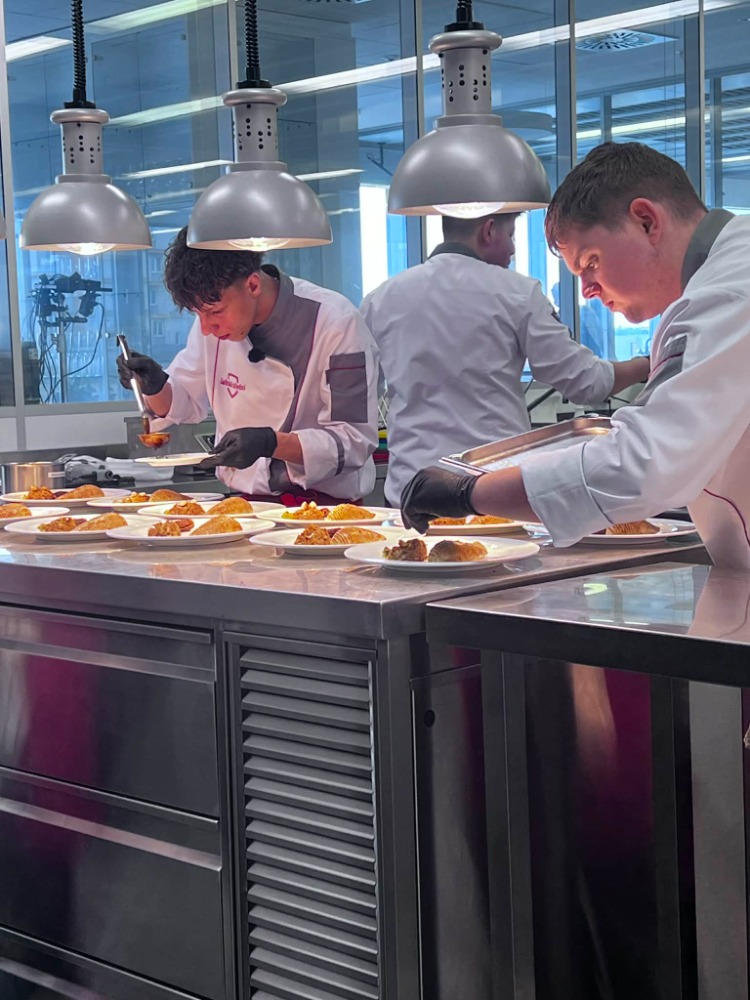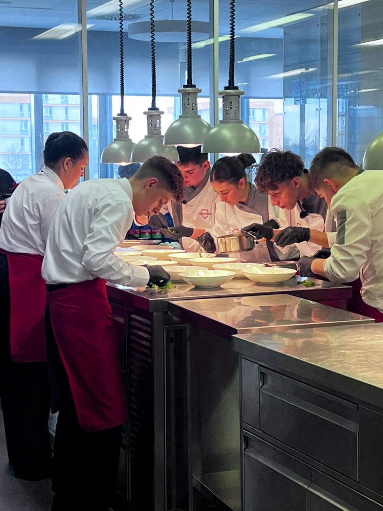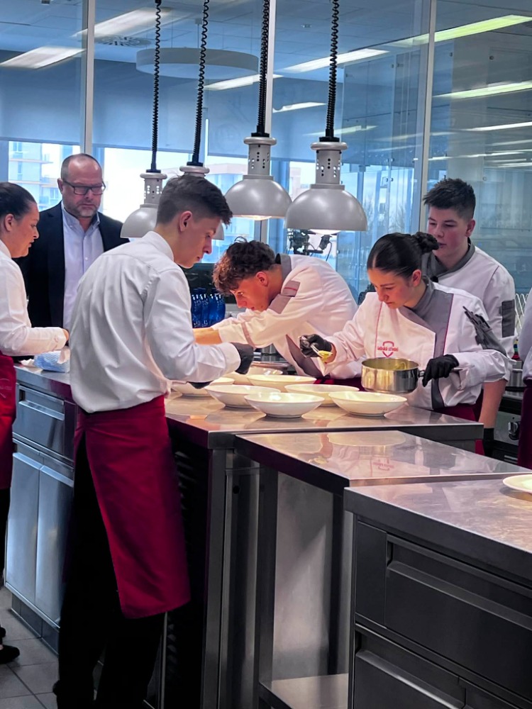 Úkolem soutěžících bylo kompletně připravit provoz moderní restaurace od sestavení vlastního menu přes přípravu welcome drinku až po precizní servis. Tým našich žáků představil kreativní předkrm i hlavní chod včetně příloh a omáček. Úspěšně pracoval s povinnými surovinami, mezi které patřily čerstvý mořský vlk a celé kuře.