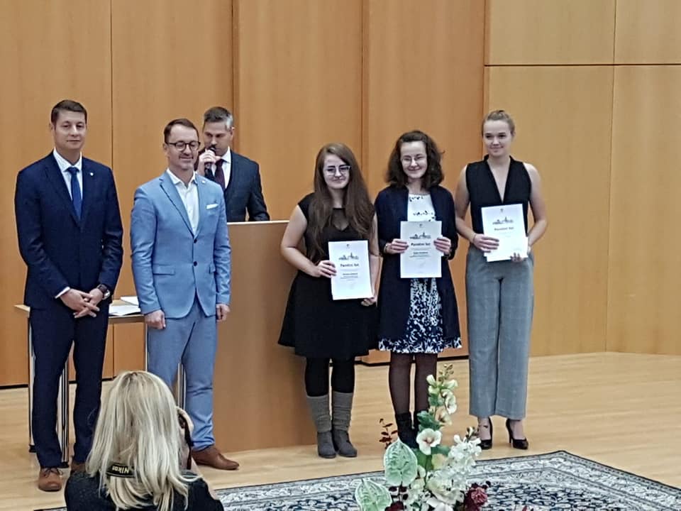 Pamětní list a finanční odměnu od města Pardubice převzaly dne 13. listopadu 2019 v prostorách univerzitní auly tři žákyně naší školy. Hana, Radka i Kateřina prokázaly v mnoha soutěžích svůj talent a píli. Navíc vždy patřily mezi nejlepší studenty školy.