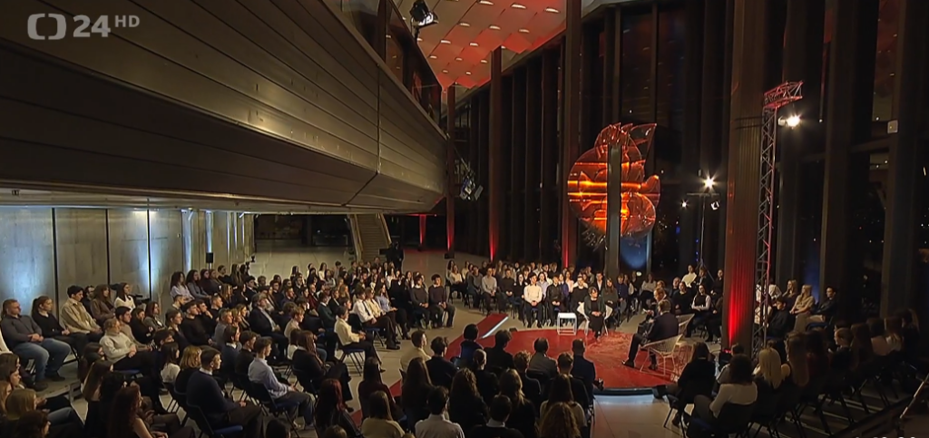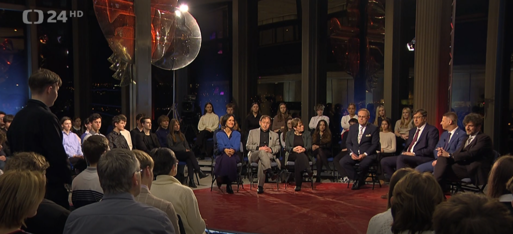 Studenti naší školy se zúčastnili dne 24. 2. 2026 natáčení diskusního pořadu Fokus Václava Moravce, který byl věnován tématu Dědictví komunismu a natáčel se v prostorách Kongresového centra v Praze. Do pořadu přijali pozvání významní hosté, politik a diplomat Michael Žantovský, historik Petr Blažek a Jakub Rákosník, bývalá ombudsmanka Anna Šabatová, ekonom Tomáš Prouza a soudkyně Kateřina Šimáčková. Hosté společně s moderátorem rozvíjeli témata ekonomické transformace po roce 1989, vyrovnání se s minulostí, spravedlnosti, lidských práv i současných rizik ohrožení demokracie.