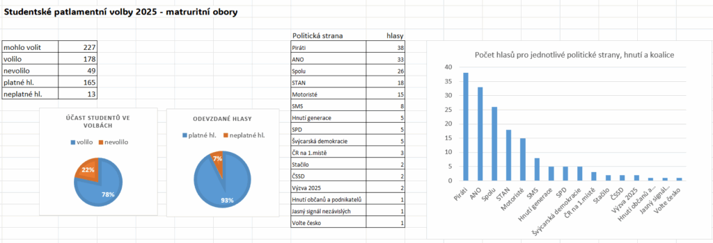 Studenti si vyzkoušeli volby nanečisto a výsledky ukazují, komu by dali svůj hlas.