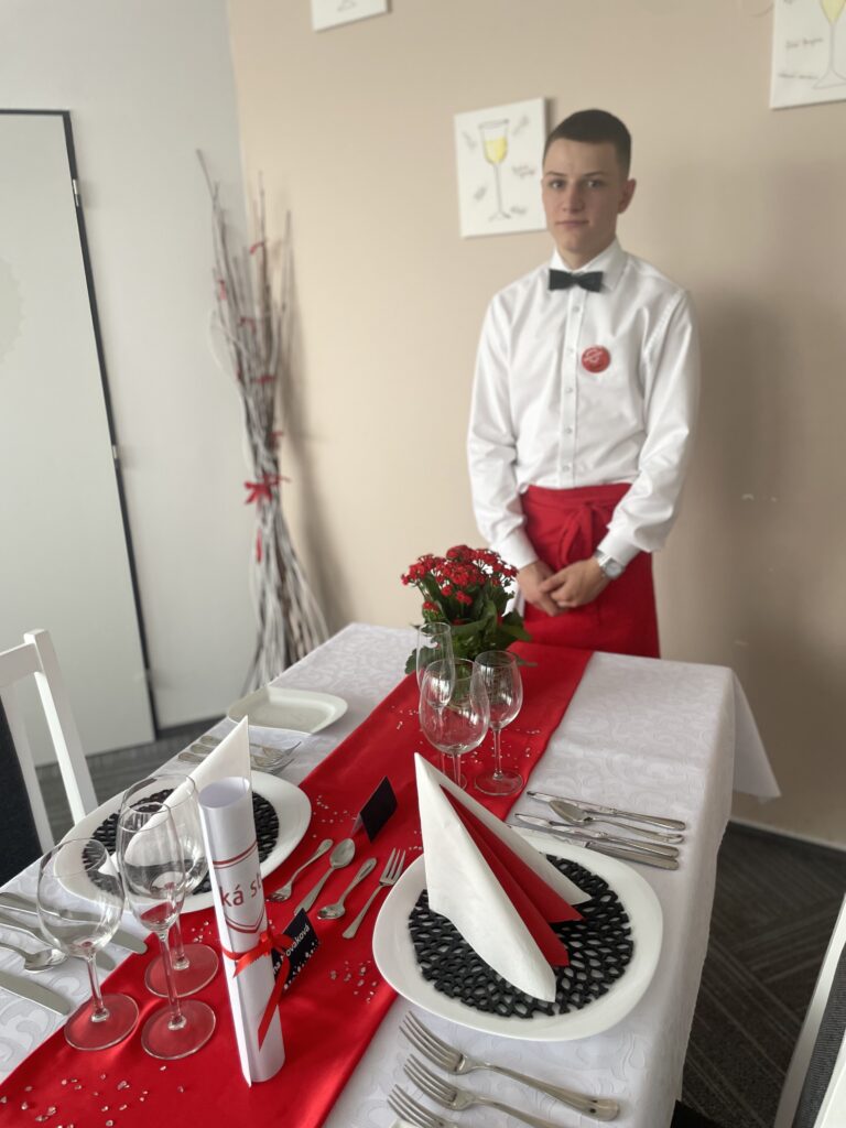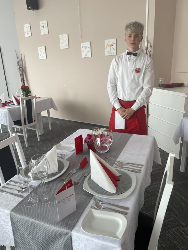 A jak zhodnotili závěrečné zkoušky naši žáci? Žák 3. ročníku oboru kuchař-číšník Tomáš Resler nám prozradil: „Nejnáročnější částí byla pro mě obsluha, byl jsem hodně nervózní, ale zvládl jsem to a vše dopadlo podle mých očekávání. V kuchyni mě bavilo připravovat pokrmy, při obsluze byla nervozita znát. Oporou mi ale byly zejména odborné učitelky Mgr. Šimečková a Mgr. Kmoníčková.“